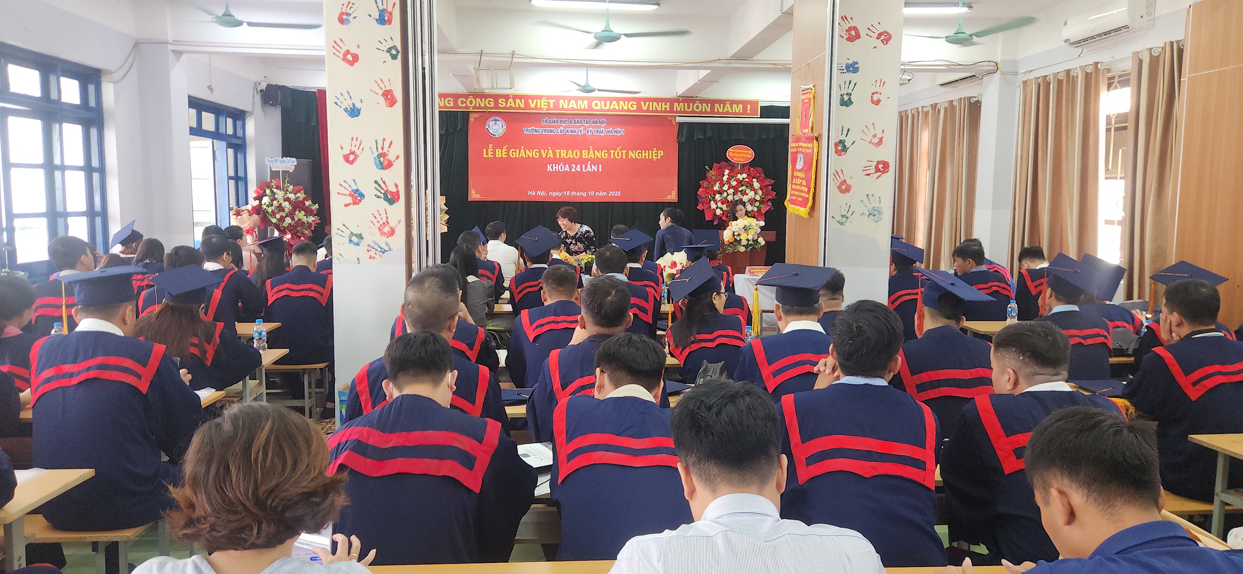 Ngày 18 tháng 10 năm 2025, Trường Trung cấp Kinh tế – Kỹ thuật Hà Nội 1 đã long trọng tổ chức Lễ bế giảng và trao bằng tốt nghiệp Trung cấp khóa 24 – lần 1. Buổi lễ là dấu mốc quan trọng, ghi nhận kết quả học tập và rèn luyện của các học sinh sau thời gian nỗ lực, phấn đấu không ngừng tại mái trường thân yêu.