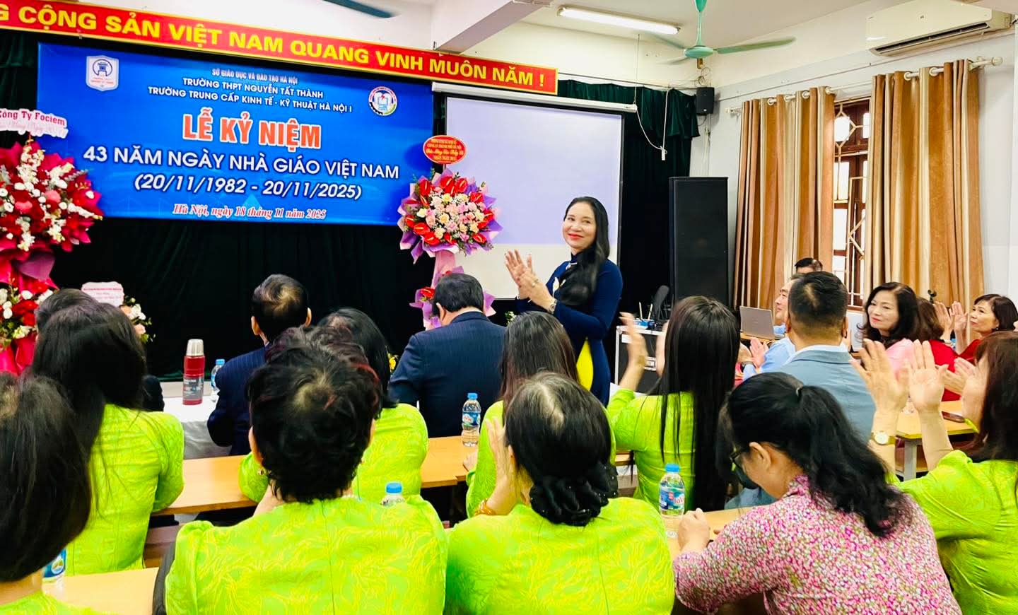 Ngày 18 tháng 11 vừa qua, trong không khí hân hoan hướng về Ngày Nhà giáo Việt Nam, Trường Trung cấp Kinh tế – Kỹ thuật Hà Nội 1 phối hợp cùng Trường THPT Nguyễn Tất Thành long trọng tổ chức lễ kỷ niệm 43 năm Ngày Nhà giáo Việt Nam (20/11/1982 – 20/11/2025).