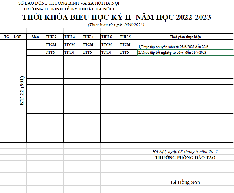 THỜI KHÓA BIỂU HỌC KỲ I- NĂM HỌC 2022-2023 Lớ ...